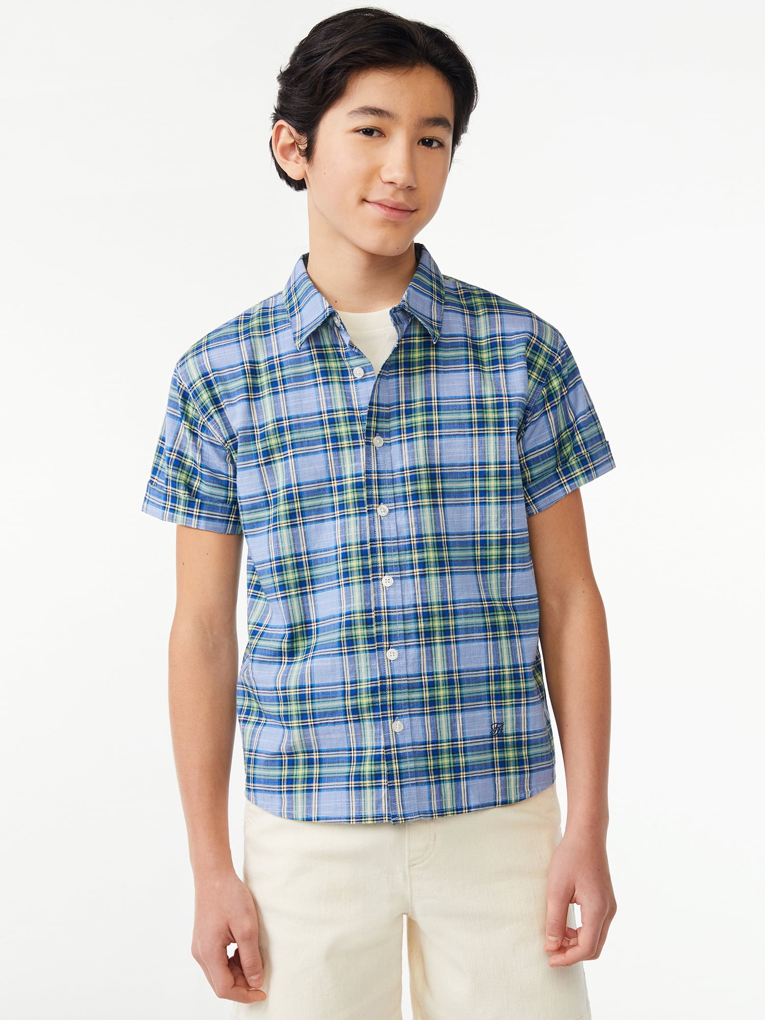 Free Assembly Boys Short Sleeve Slub Cotton Button Down Shirt Sizes 4 18 Walmart Com